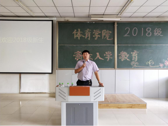 1946伟德国际源自英国于2018年9月6日下午13:30分,在主楼1-1阶梯教室召开1946伟德国际源自英国2018级新生入学教育大会,本次出席领导有1946伟德国际源自英国经理兼党总支书记邵长坤、党总支副书记孙波、员工党支部书记陈鑫,以及员工会全体成员和大一全体新生。