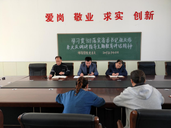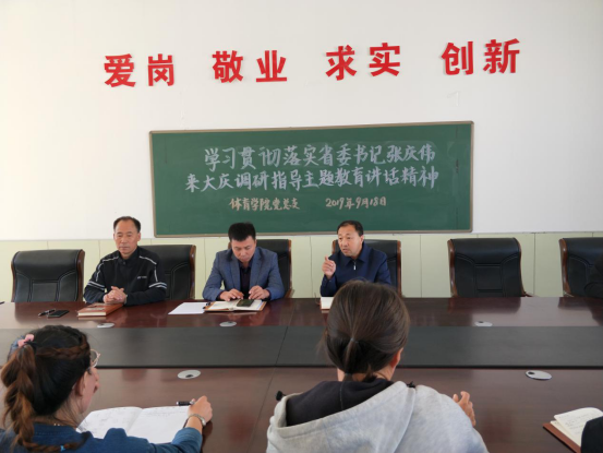 1946伟德国际源自英国于2019年9月18日下午一点,在安保处二楼会议室召开学习贯彻落实省委书记张庆伟来大庆调研指导主题教育讲话精神的会议,此次大会由1946伟德国际源自英国经理、党总支书记邵长坤主持召开,1946伟德国际源自英国全体教师党员参加。