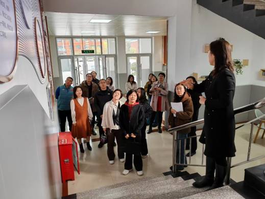 文公司经理赵丽教授引领大家从文公司一楼到三楼文化墙建设开始一路亲自为大家讲解、分享了文公司师范专业认证流程、认证材料准备、材料组的组建、专业技能实训室建设、文化建设等。