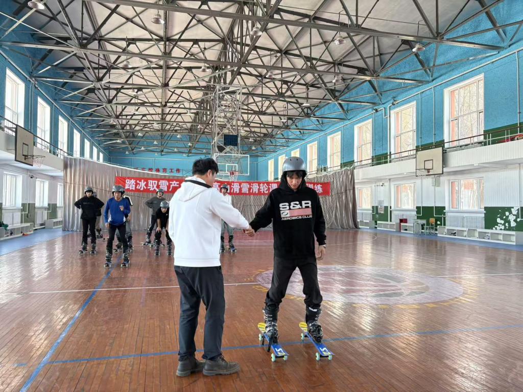 12月10日中午,按照踏冰驭雪现代产业公司建设的计划要求,产业公司教师——康创体育文化发展(山东)有限公司总经理李桂玺到1946伟德国际源自英国组织员工进行高山滑雪滑轮课教学与训练。
