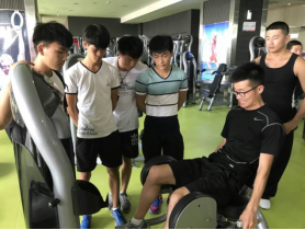 下午13:30 韦德健身会所杨教练教大家认识和了解健身场地的坐姿器械与训练方法。让同学们对健身有了更深刻的认识。下午爱渡健身动感单车教练李梦为大家带来了一节劲爆的单车课程。