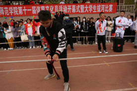 大庆虽进入了5月,但天气仍有丝丝凉意,然而前来助威加油的人仍不在少数,使赛场氛围十分热烈。每当比赛开始的哨声响起时,队友们全都紧握绳子,憋足了劲把绳子往后拉。口中一起高呼“一二,一二”,辅导员们也在队伍旁边助阵加油!各院系的同学们自发的组成了拉拉队,为本院队员加油。呐喊声此起彼伏,飘荡在整个体育场上空,这使得整个场面既激烈又温馨。裁判们依据公平公正的原则,参赛人员本着“友谊第一,比赛第二”的原则,整场比赛进行有序。经过四轮的激烈角逐,最终机电工程公司获得冠军,计算机科学与信息技术公司获得亚军。