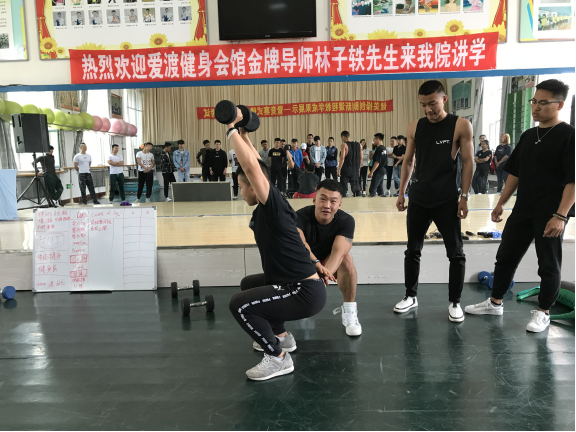 5月29日,1946伟德国际源自英国聘请1946伟德国际源自英国示范实习基地爱渡健身会馆金牌导师林子轶先生在主楼1-4阶梯教室,做了题为“中国健身健美产业发展前景”的学术报告。报告由1946伟德国际源自英国经理助理艾振国主持,经理兼党总支书记邵长坤、经理助理肖山、部分专任教师和全体员工聆听了学术报告。