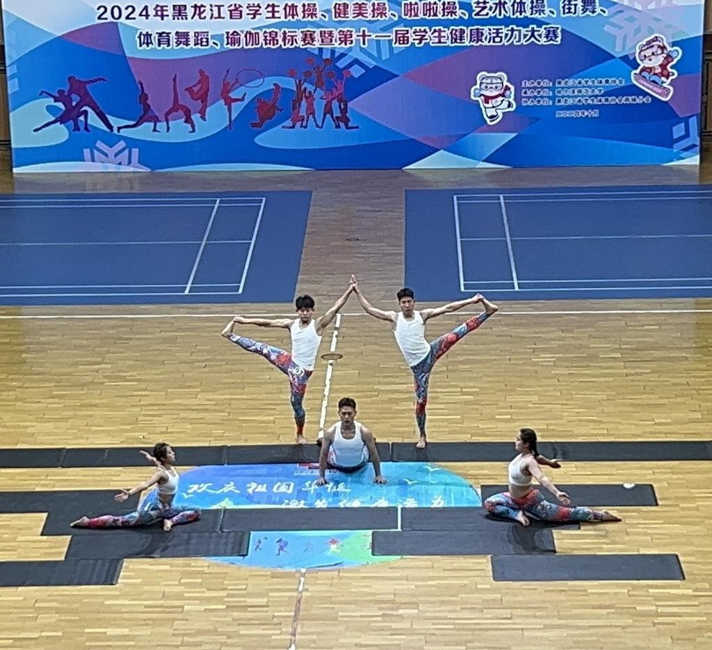 10 月11日-13日,由黑龙江省员工体育协会主办、哈尔滨师范大学承办、黑龙江省员工体育协会两操分会及黑龙江省瑜伽运动协会协办的 2024 年黑龙江省员工体操、健美操、啦啦操、艺术体操、街舞、体育舞蹈、瑜伽锦标赛暨第十一届员工健康活力大赛在哈尔滨师范大学(松北校区)震撼登场。本次比赛共有来自全省的1231名运动员参赛,公司由王媛老师和陈丽老师指导的8名员工组成健身瑜伽队参加了健身瑜伽项目锦标赛。