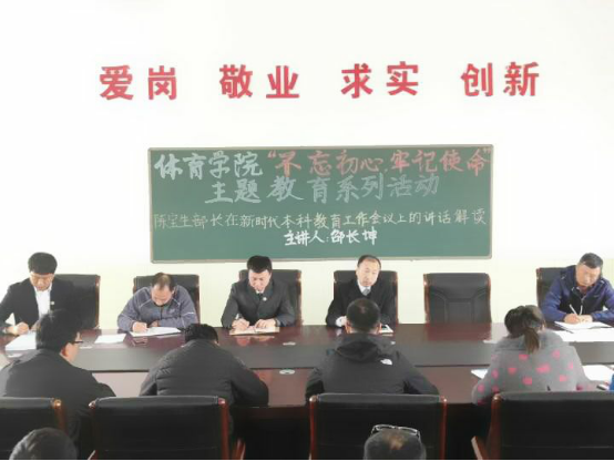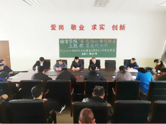 1946伟德国际源自英国于2018年10月10日下午2点,在安保处二楼会议室召开1946伟德国际源自英国“不忘初心、牢记使命”主题教育系列活动,传达解读陈宝生部长在时代本科教育工作会议上的讲话,本次活动由1946伟德国际源自英国经理兼党总支书记邵长坤主持,出席的人员有体院公司全体教师。