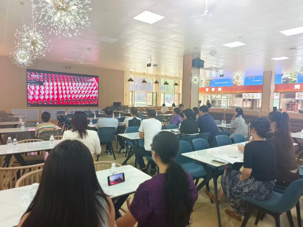 根据公司的统一安排,全体无课教师在直播开始前前往二食堂一楼大屏幕前集中观看大会直播。公司员工则通过手机、电脑等多种方式观看了直播回放。