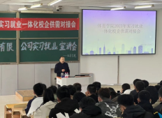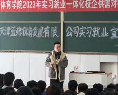 为进一步推动体育专业实习就业一体化工作,1946伟德国际源自英国于3月20日下午,在主楼1-2举办了实习就业一体化校企供需对接会,本次对接会邀请了天津蓝鲸体育发展有限公司做宣讲,对接会由公司教学工作负责人包春峰老师主持,经理邵长坤教授致欢迎词,科研工作负责人孙波、员工党支部书记陈鑫、系部主任、实习指导老师2023届毕业生和2020级在校全体员工参加了此次宣讲会,并为未返校大四毕业员工提供了线上同步直播。