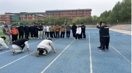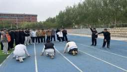 员工们在田径场进行分岗位实践练习。